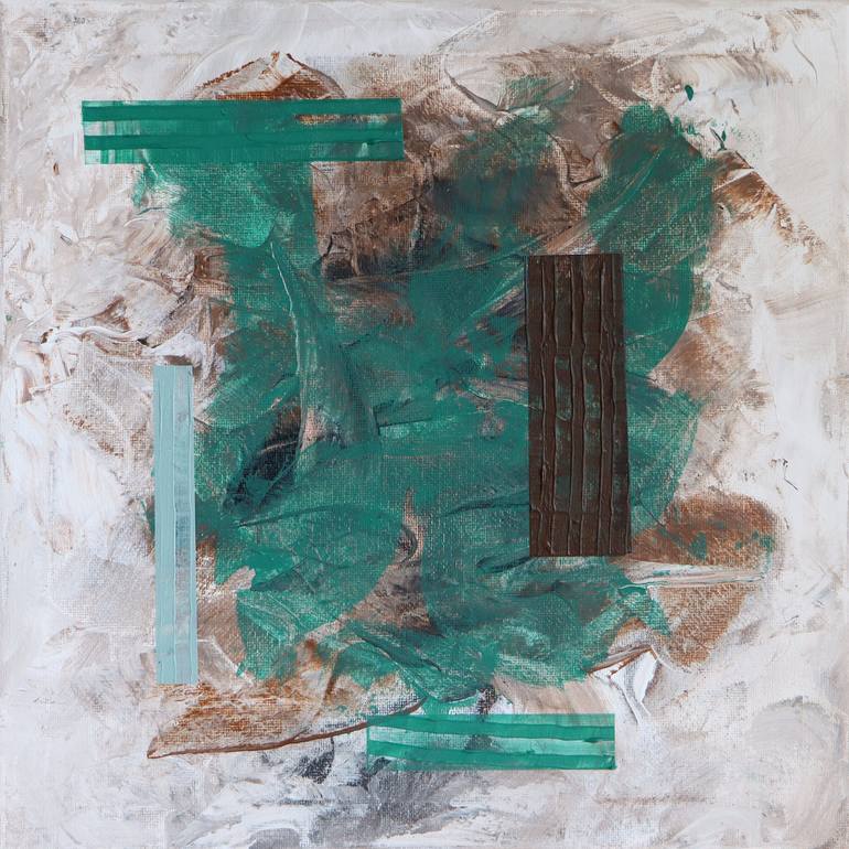 I like abstract shapes and geometry. This work reflects the chaos of the world. With rest points that we have to make ourselves depicted by the streamlined rectangles