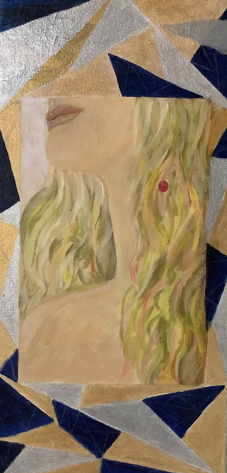 Abstract Portrait Original Painting in Acrylic with Silver and Gold art media on canvas 8x20" Original Art by Antonina Dunaeva-Come4Art Original art work in acrylic by brush with gold and silver art media, unique motive, unique composition in bright colours, on a stretched canvas, a frame is not r...