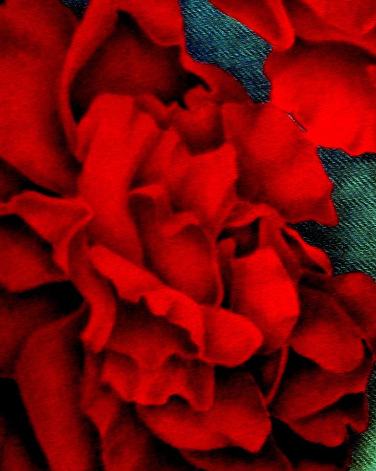 Image of an original oil painting of a red rose on canvas that I digitally enhanced. Selling as prints.