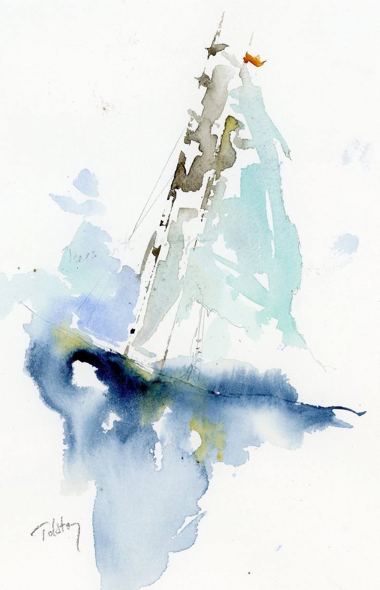 Her is an abstract sailboat with sails blowing in the wind.