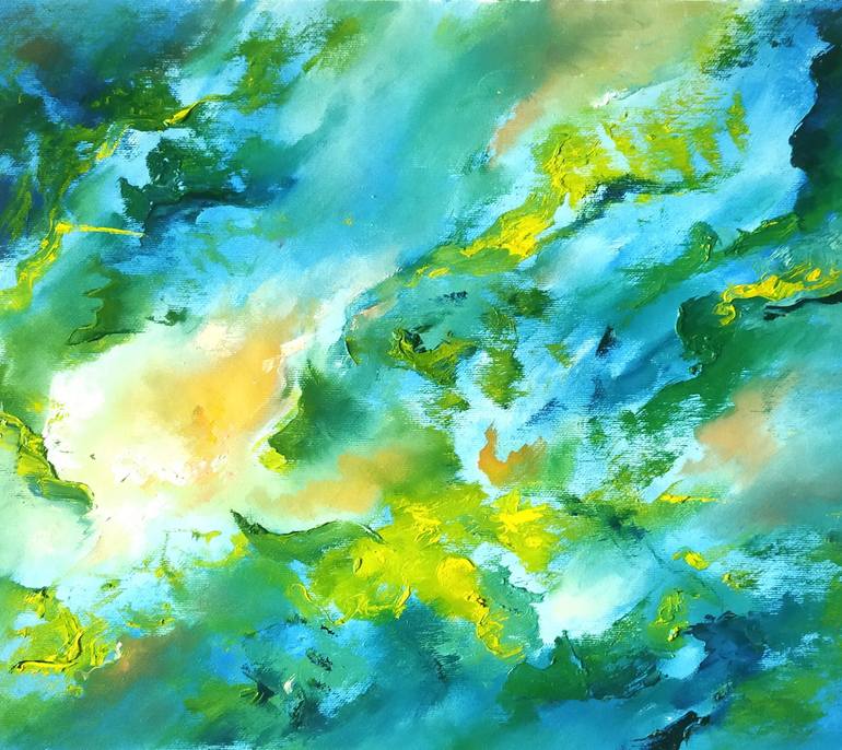 Seascape blue green oil painting on UNSTRETCHED canvas Abstract nautical fluid artwork Ocean coastal vibrant fine art 13 x 15 inches This one-of-a-kind nautical abstract coastal landscape embodies the essence of the ocean, with its dynamic waves and tranquil ambiance. Carefully handcrafted with met...