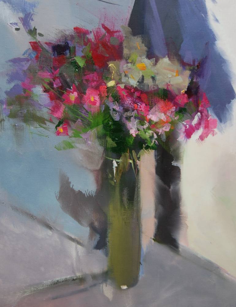 Thinking about Freshness is a vibrant abstract floral painting from my Still Life Collection 2016. This original oil painting captures colorful fresh flowers in a vase, bringing a touch of nature's beauty into your space. I've used dynamic brushstrokes to emphasize the vividness of this still life ...