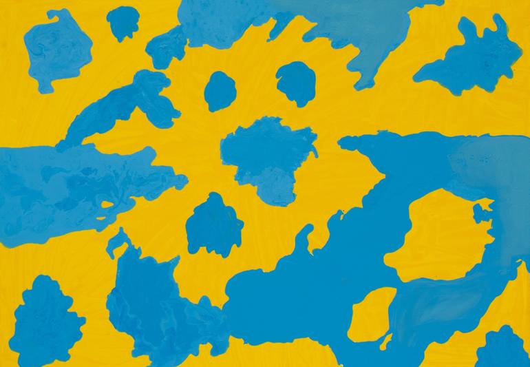 Abstract painting in technique Fluid art, acrylic painting on streched canvas, in blue and yellow colours. Ships in a tbox. This is my favourite colours and colour combination, but also it is colours of Ukrainian flag. Ukraine is my motherland, now it is suffering from war, and painting this picture...