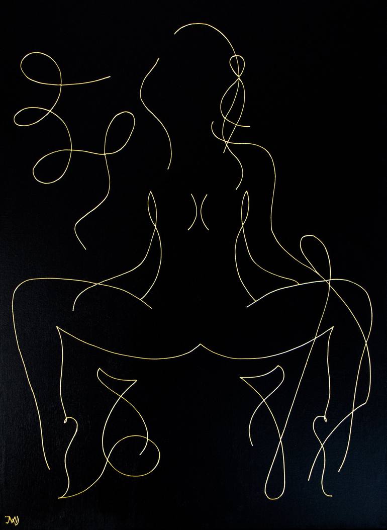 Black minimalism Title : "Captivating". Original artwork in modern and minimalism style. One-line is in relief and covered with Gold Leaf. This painting of a nude figure represents a captivating woman, seductive and mysterious. The single line represents the body of this elegant woman in a grac...