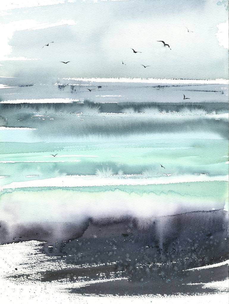 Original watercolor painting Medium: Watercolour on Paper Saunders Waterford 300g One a kind artwork Size:31 x 41 cm (unframed) / 12 x 16 in Signed on the front Style: abstract Subject: seascape 2022 Certificate of Authenticity is included Unframed