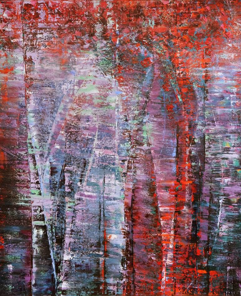 Collection «Abstract art» «Trees are the earth’s endless effort to speak to the listening heaven». (Rabindranath Tagore) Deep red, purple and green tones prevail in the artwork. It will be a great fit for a variety of interiors, both neutral and colorful. The work was painted in multiple layers wi...
