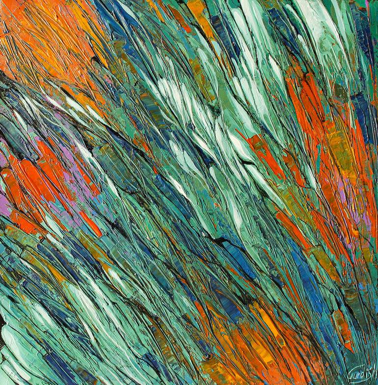 This abstract wall painting is a contemporary artwork that evokes the serenity and sanctity of nature. Crafted with vibrant acrylic colors, the artwork features a harmonious blend of blues, greens, and oranges, reminiscent of the natural world. The abstract style creates a unique and visually appeal...