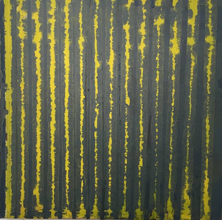 Abstraction # 200, acrylic on canvas, 40 x 40 cm, 2019, represents the artist's newest look in his stage of maturing as a painter. The yellow colored strips alternated with grey convey modernity. The irregularities of the brushstrokes, to be appreciated closely, and the transparency of the color c...