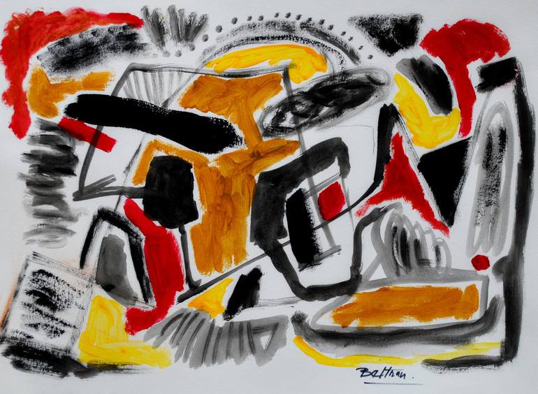 Acrylic on paper. Abstract art 11,8x15,7 in / 30x40cm original and one of a kind artwork signed front and back the painting comes with a Certificate of Authenticity (COA) The pictures in situ are computer generated and proposed in order to illustrate only Pierre-Yves Beltran création / 2020