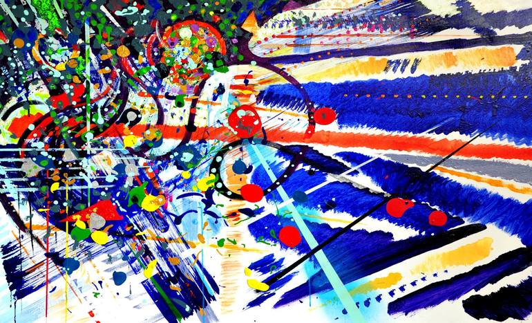 The idea for this abstract image came to me at once - suddenly!. Fist it was "floated" in my mind and then I had a great desire to paint it on canvas. Viewers will feel the artistic truth. Combining several different techniques together on canvas, we get a wealth of artistic expression.