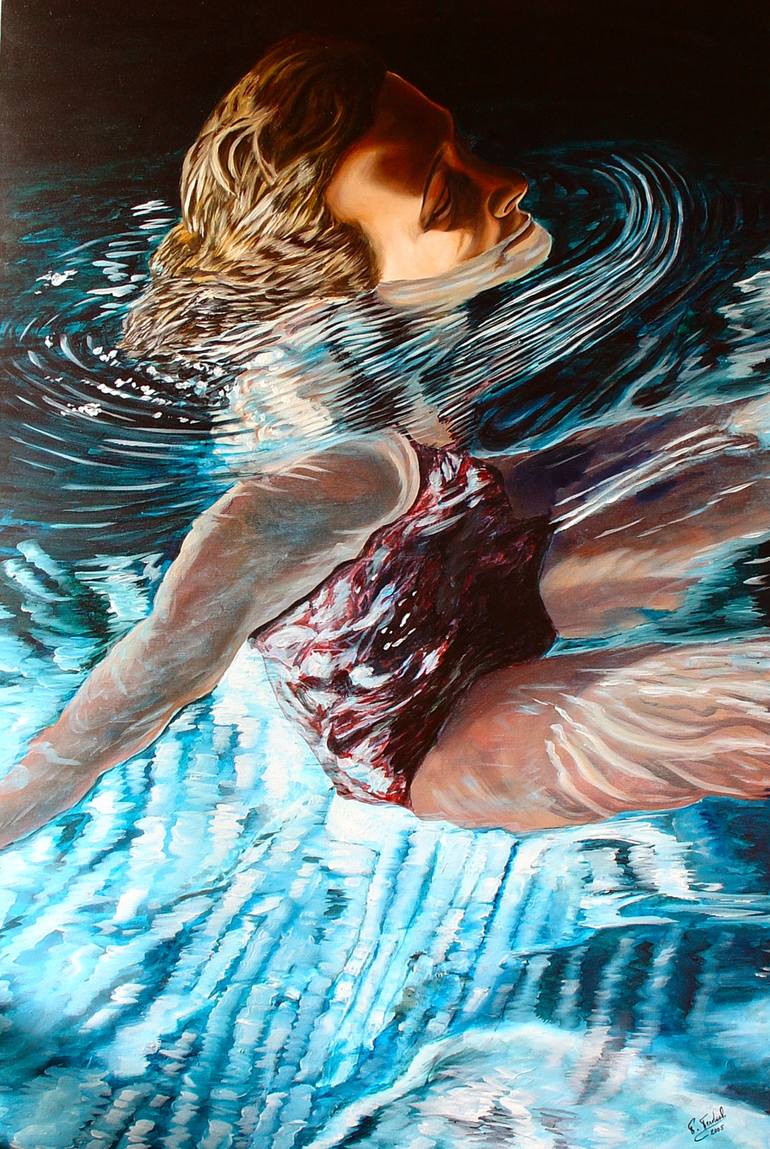 I combined acrylic and oil to explore the metaphysical nature of water, both real and symbolic. In my canvas, the human figure emerges in the dreamlike depths, in a surreal journey that defies perception. This work conveys the vital energy and mystery of existence and invites the viewer to contempla...