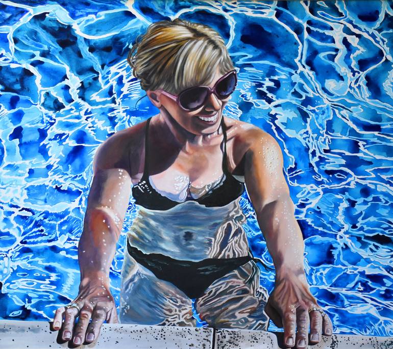 Portrait of a woman in pool. The figure being altered by the light refractions and reflection of water movement. The inspiration came from the water, at from the challenge to express feelings via a figurative work. Hope to transfer to the viewer a feeling of quietude, of freedom, of absence of weigh...
