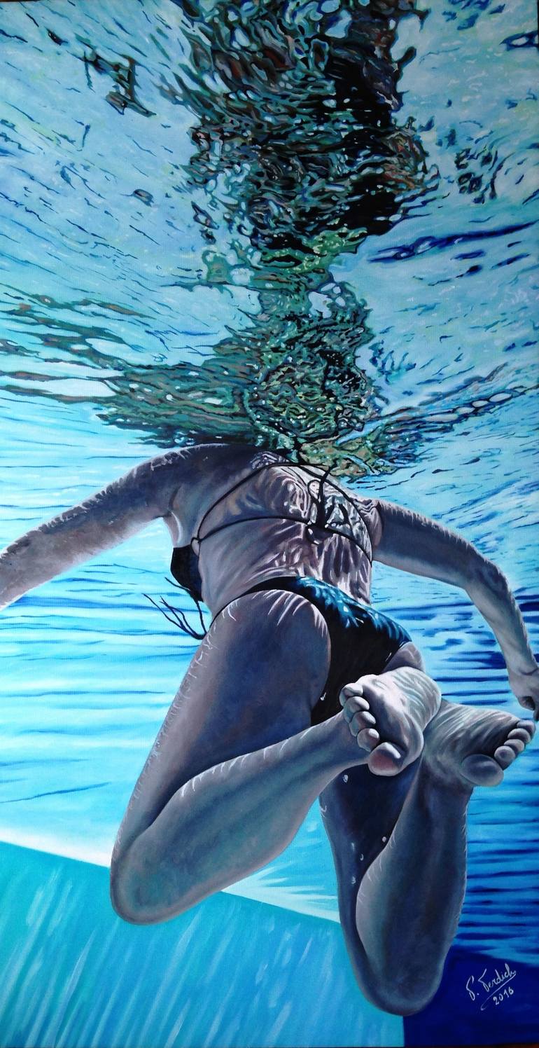 Figure of woman underwater, with reflections. Inspired by the sea and the lights.