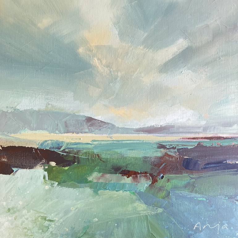An abstract seascape painted with acrylic on canvas, using a palette knife for texture.