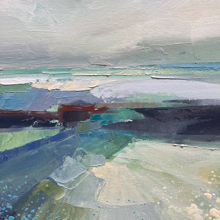 An abstract seascape painted with acrylic on canvas, using a palette knife for texture.