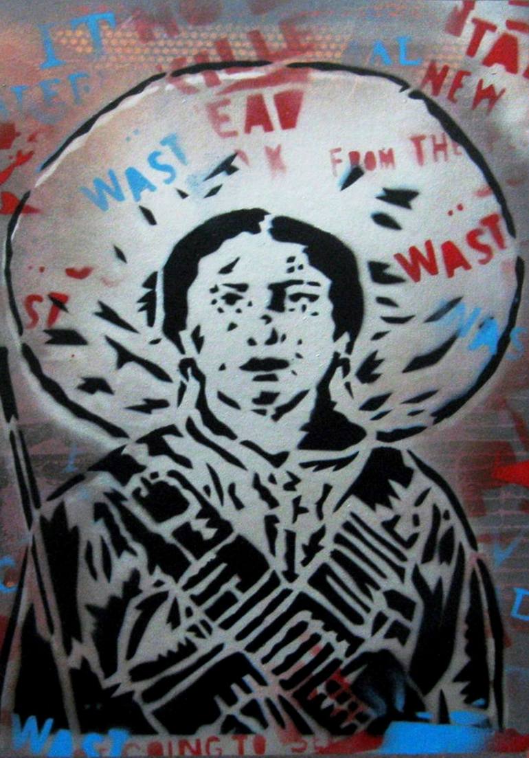 CARLOS MADRIZ - PAINTER - PRINTMAKER (b. 1972 CARACAS – VENEZUELA) Born and brought up in Caracas, in the mid-80's Carlos started experimenting with drawing, etching, silk-screen printing, design, painting and Street Art. It was at this time that he developed the skills and techniques needed to handle the 'X-Acto' blades that became his constant companion for creating stencils, a defining characteristic of his artwork. He began producing small and medium size prints, small, medium and large paintings, and then murals. In the early 90's, Carlos began studying at Caracas Advanced School of Arts and at the same time became involved in a number of projects born out of the local punk rock scene, including the design and creation of fanzines and posters and band merchandising activities such as designing and printing tee-shirts. In the mid-90's he moved to San Francisco, California, where he completed his studies in painting and printmaking and took part in various collective mural projects, taught workshops and exhibited his artwork in a number of group shows in spaces such as Balazo Mission Badlands Gallery, Mission Cultural Center for Latino Arts (MCCLA), Atelier Golgotha, SoMa Gallery and City Arts SF. Then in 2000 he moved to London. Here he worked teaching art workshops for young people, painting murals and showing his work at exhibitions in socially-committed cultural centers in Brixton, a neighborhood in south London. In 2002 he moved to Lecrin Valley in the province of Granada, southern Spain, where he lives and works today. The inspiration for Carlos' work comes from the Latino American popular culture in which he grew up and from the rebellious, non-conformist energy which surrounded him at the beginning of his career. These influences are still present in his work, spiced up with a touch of biting, sometimes hard-hitting, humor. Carlos does not consider himself so much an artist as a maker of images, free from pretensions and power trips, and this makes his work accessible to a wide audience.