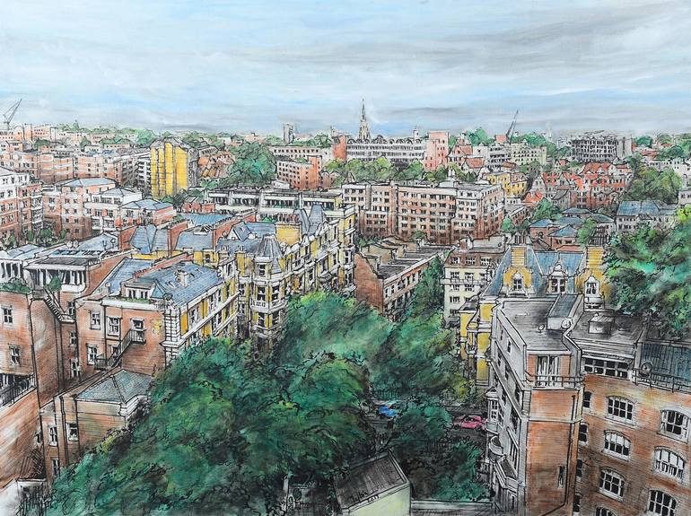 On a visit to London , I visited my Neice's apartment & this view is from her balcony . Loved the view with the multitude of brick apartment buildings - some modern & some showcasing the traditional architecture .The landscaping provides relief from the grey overcast skies.