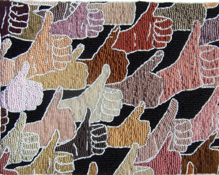Peggy Corallo Dembicer is a contemporary fiber and mixed media artist noted for intricate beaded tapestries, modern and colorful 2D and 3D paperweaving, as well as the creative application of recycled materials in framed and sculptural artworks. She employs polymers, oil and acrylic paints, novelty yarns and miscellaneous objects to create her unique and engaging pieces. Many of Dembicer’s designs draw inspiration from popular culture, geometric patterns or by emulating, through reinvention, the works of artists she admires. Her focus on up-cycling and repurposing discarded and found objects is evident in her mixed media works. Fiber and beads are the consistent and cohesive element in much of her studio practice. Her expertise in weaving, stitching, embroidery, mosaics, collage, wrapping, knotting, painting and crocheting contribute to a diverse portfolio with broad reaching appeal. Dembicer holds workshops at art organizations and exhibits her work in galleries throughout the Northeast United States. She currently lives and works in Weston, Connecticut.