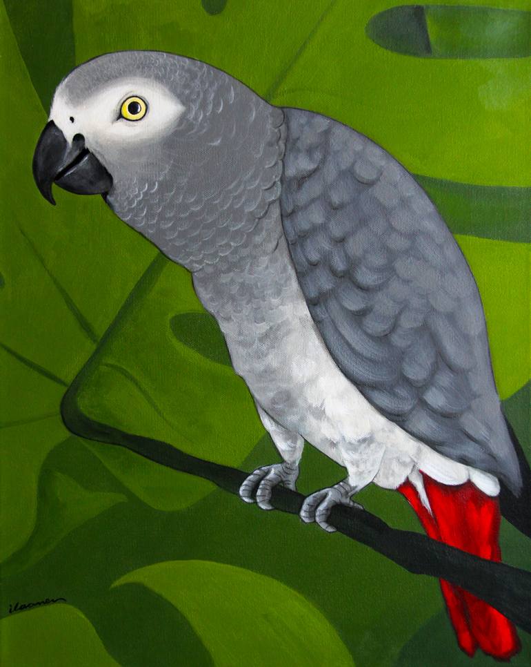 2021 / Acrylic and graphite on stretched canvas. Commissioned piece of an African Gray Parrot named Eeyore. This piece is already SOLD.