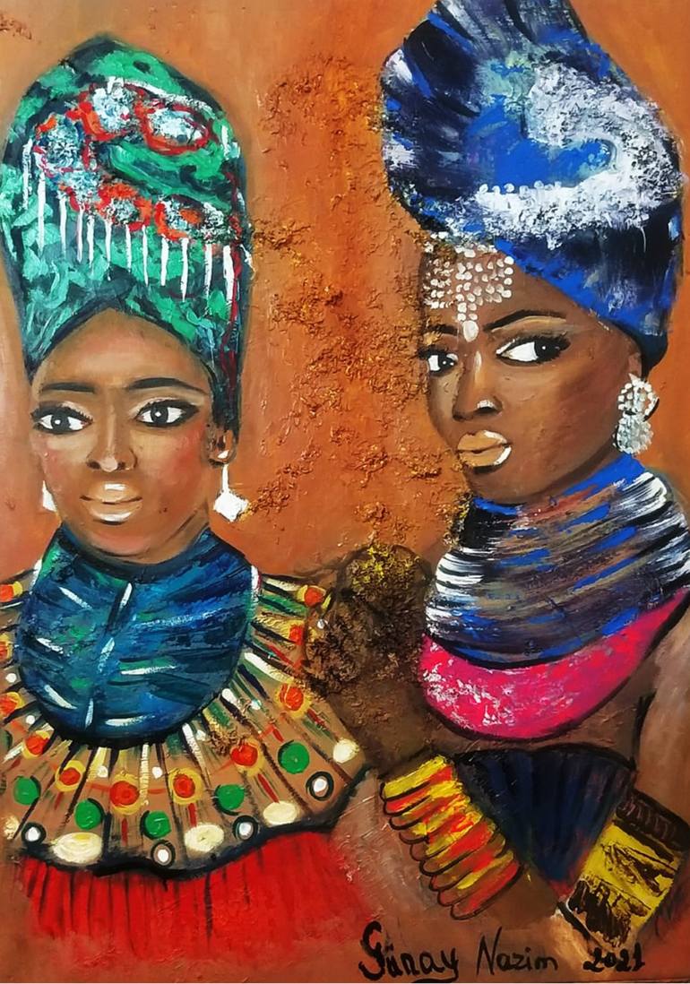 This painting is part of the Charming Ladies series. As part of the series, this work participated in the international festival "GOLDEN TIME TALENT ART" on 07.2022 and was awarded the 3rd place prize. African women always use a lot of jewelry. I have tried to depict their big eyes and decorations ...