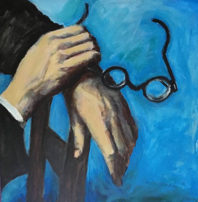 I am fascinated painting hands and feet, which younger and less experienced artists shy from. I find them sensitive and emotional. Kertesz is one of my favorite photographers. I used his black and white photo of Paul Armas' hands and made up the colors. I try to work sparingly so it comes from ...