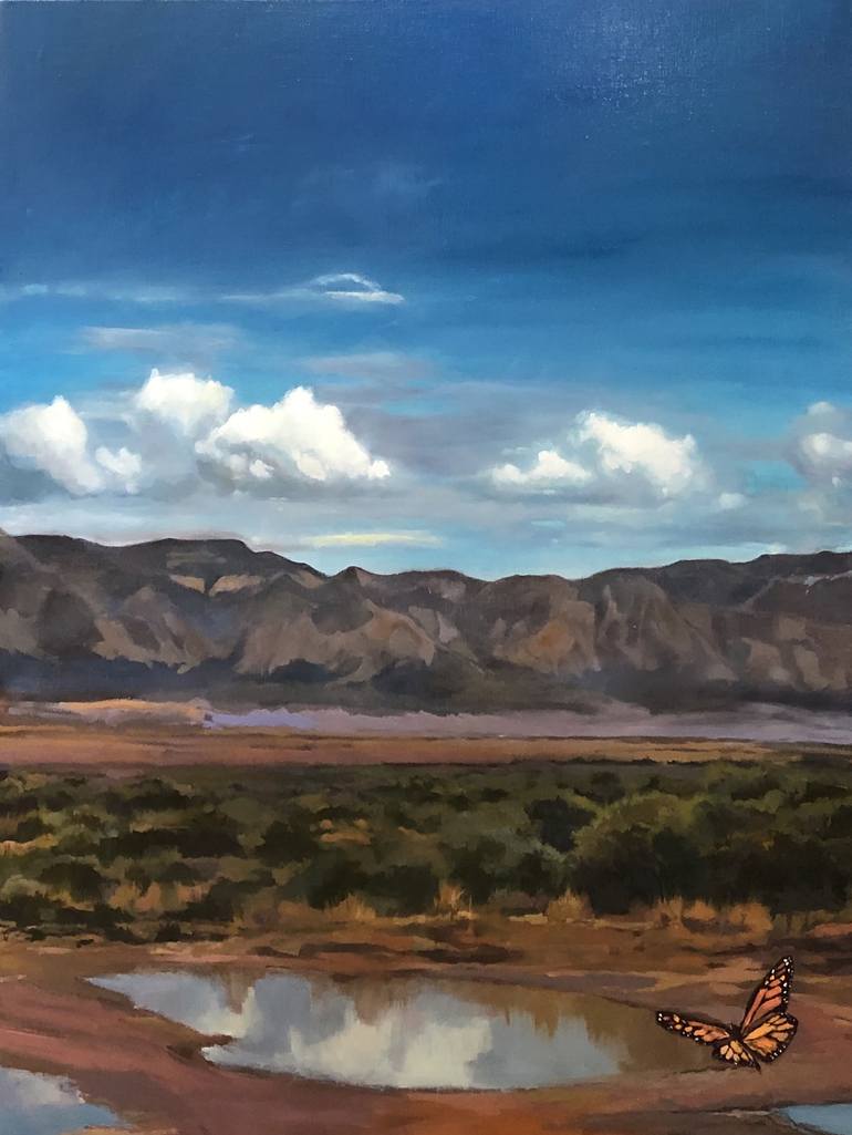 A horizon line is not just a vanishing point. It can be a symbol of what lies ahead-challenges, expectations and wonderful possibilities. Serenity is thematic in my work and the healing power of nature. This painting was inspired by the views of the Manzano Mountain Range in New Mexico.