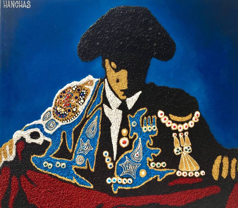 Original work by Yul Hanchas inspired by Spanish traditional torero costume. Original volumetric technique, incrusted by natural stones and pearls.