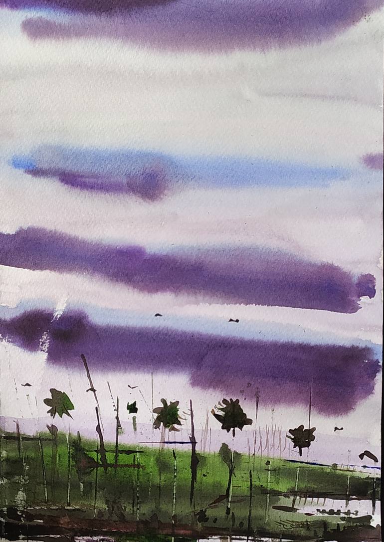 Painting inspired by the colors of rainy season around me glow of fresh atmosphere bright colors are the thought behind this work.