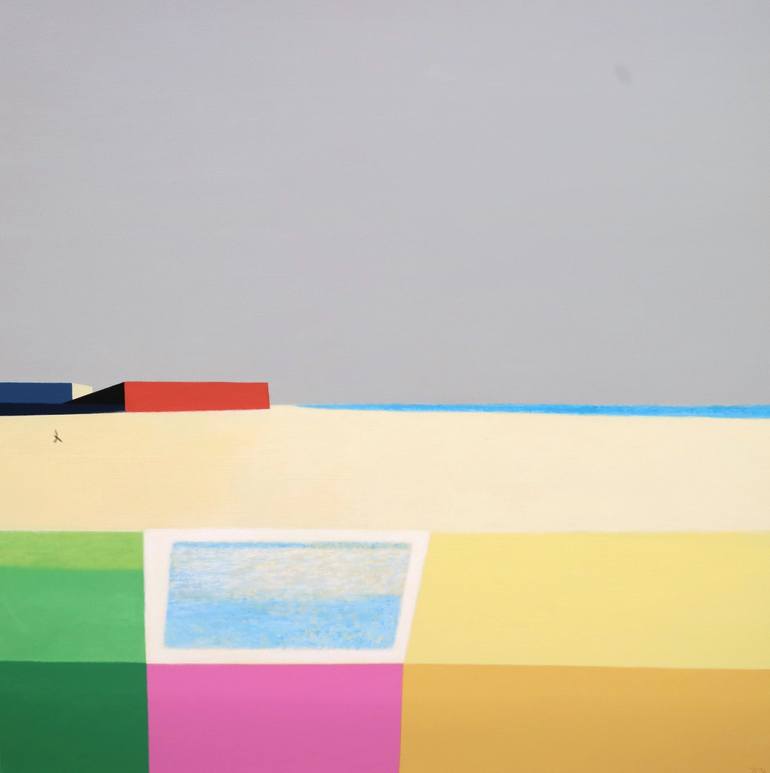 "After the rain" 48" X 48" acrylic/canvas 2024. This painting was inspired by summer rain storms and Atlantic ocean coastal beach towns.