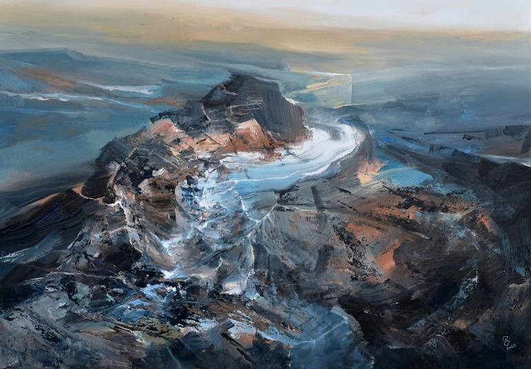 Original artwork description: " Agartha - Black Peak of the Northern Walls "......Painted with expressive moves.......with pallet knife and with a brush..... I'm giving all best ,to be represent the true colors of the paintings in the photos, but sometimes you can see a little difference in tone.. I...