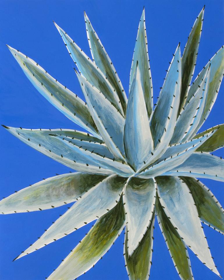 Part of an ongoing series of desert plants on solid color backgrounds. This is a more monochromatic scene of agave plant on a royal blue background. Looks great on its own or with its two companion paintings. Signed, dated, and titled on the back, unframed.