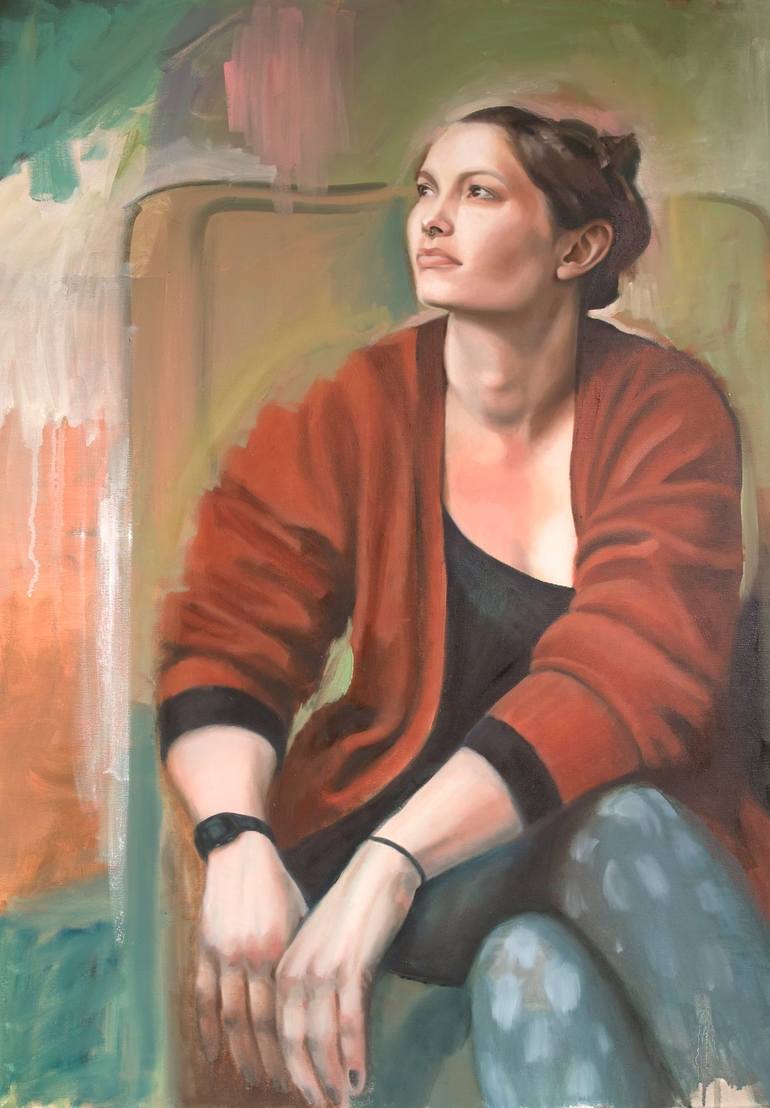 This oil painting is part of a series of three portraits called "The Three Graces".