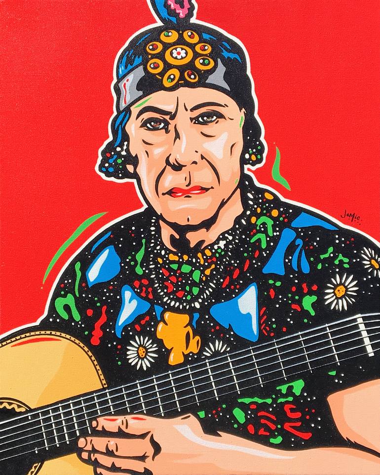 Pop art painting of legendary Paraguayan classical guitarist and composer Agustin Barrios Mangoré, otherwise known as 'Nitsuga'. I don't use software to produce my initial design, each painting is drawn by hand from the source photo. For me this gives the finished painting a much smoother, and more...