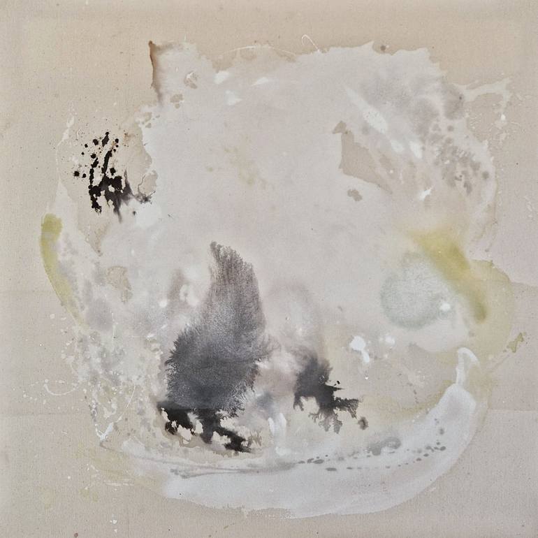 In my newest works, I use raw canvas. Kneeling or standing over the large blank pieces, I pour out the paint directly onto the fabric. I play with pictorial depth by building up veil-like layers of colour that coalesce into amorphous forms. Soft washes with wispy, feathery edges are paired alongsid...