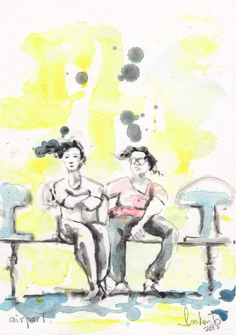 From sketching while I wait … this one from an airport … there’s an immediacy in the sketch which I tryyy to captured in the painting, here quite well. Small projects in A4 size are great to work out ideas, and just as a way of keeping in touch with colour and paper. Here I am using a loose approach...