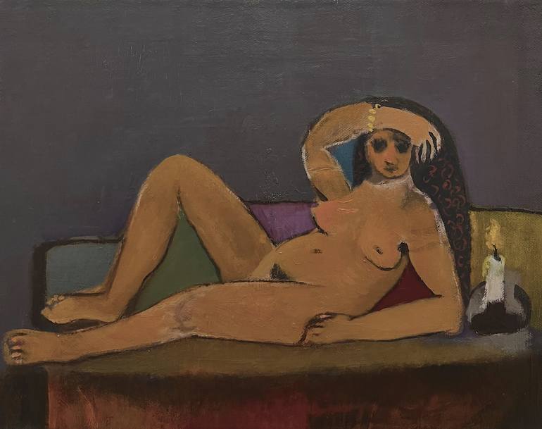 Title: „Akt mit Kerze“. Signed on the backside. Size: 58 x 45,5 x 4 cm. (please note: dimensions are given in centimeters) Weight: ca. 800 gr. Shipping weight ca. 5000 gr. Condition: perfect. Comes with photo-certification.