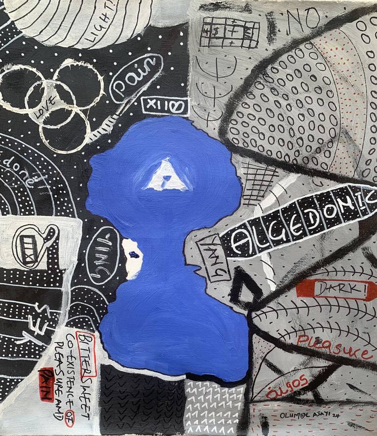 Olumide Ajayi, born in the vibrant and culturally rich Osun State, Nigeria, is a multifaceted individual whose diverse interests and talents span writing, entrepreneurship, business management, and technology. Growing up in a region known for its deep-rooted traditions and artistic heritage, Olumide developed a profound appreciation for the arts, music, and entertainment from an early age. With an educational background in science and experience in business management and technology, Olumide has successfully combined his entrepreneurial spirit with his passion for creativity. Olumide’s works have been exhibited on prominent walls, including the National Museum of Unity, and have been purchased for a nonprofit youth shelter as great art for young minds' mental and emotional awareness at After8toEducate. Artist Statement In the depths of our being, we often encounter feelings so profound they are too deep to articulate, emotions that swirl like shadows, whispering secrets that linger just beyond the edges of understanding. My work seeks to embrace these complex feelings, giving them a canvas to breathe, shift, and resonate. My paintings generally explore the psychological and emotional aspects of everyday life. As the mind exists without form, the body acts as a window into the mind. I tried to focus on the not-so-obvious feelings. I want to tell truths that you can see only if you care to look inward and pay attention to the details. The cyclical motifs and fading gradients in my works convey the endless flow of time, where individual lives are fleeting moments in a greater continuum. Life doesn’t wait for you to be alright; it just keeps going like an endless circle. Each piece I create reflects my journey through the labyrinth of human experience. I explore the beauty and turmoil of emotions that can feel isolating yet are universally shared. With paint, textures, and colours, I invite viewers to confront their depths and recognize that the feelings they carry are valid and significant. When you stand before my work, I hope you find a connection that transcends words—a reminder that you are not alone in your struggles and triumphs. These pieces are a testament to resilience, a visual embrace that assures us all that we will be fine in the end. Together, let us navigate the intricacies of our emotions and celebrate the profound strength of vulnerability.