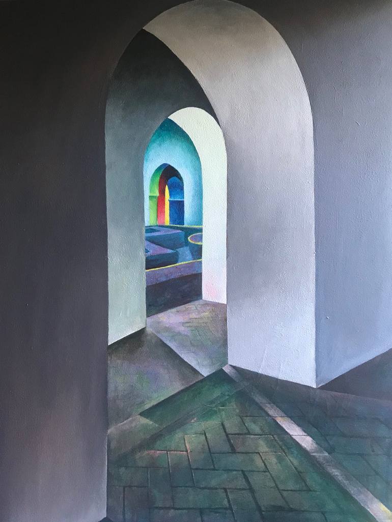 I always wanted to visit The Alhambra. Finally having gained access to all areas I photographed many views that I found inspirational. I am interested in looking through archways, doorways, openings to a place beyond which can be open to interpretation by the viewer. This painting forms part of a se...
