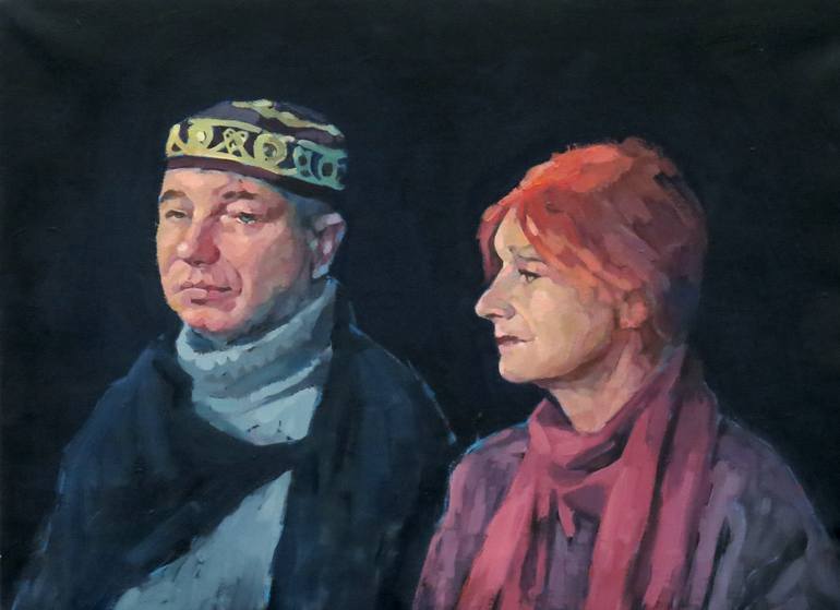 The portrait of older man and woman. Academic painting study. Canvas stretched on a wooden frame, and the sides are completely painted, the painting is ready to hang.