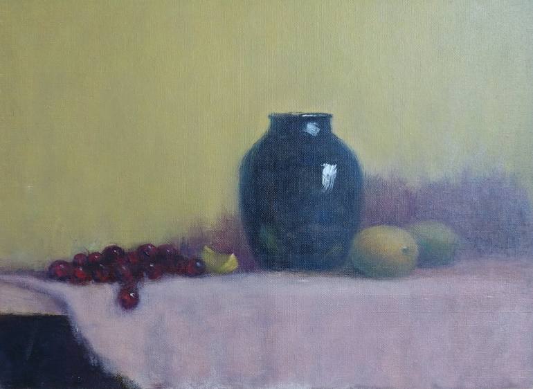 On an overcast day. A day that prevented the beautiful north light from illuminating my still life setup. I was determined to complete this painting. So, in an overcast studio, I worked and worked until I finally completed this wonderful little gem.