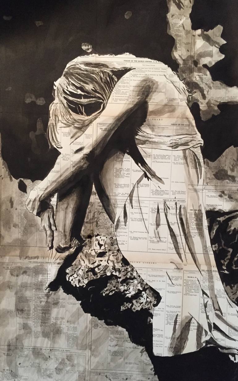 Sulbone is Tom Sullivan. Sulbone (pronounced sull-bone) is the nickname Tom received in college that stuck. He is a self-taught artist that began expressing himself through art in his forties -- a late bloomer. He could be referred to as an "emerging artist," one with no formal training but a compulsion to create; one who NEEDS to draw/paint as a creative outlet and form of expression, with the goal of connecting with others through moving and passionate art. Although he initially started drawing in pencil and then ink using crosshatching for shading, Tom now almost exclusively draws/paints using India ink on vintage paper. The paper may be old dictionary pages, sheet music, maps, etc. Most of the paper is 100 years old or more, making each piece he does a unique juxtaposition of the past and the present -- creating new out of old. The pages are repurposed to bring an emotional connection to his art. The pieces range in size from 8x10" to several feet in size. Tom is married to his loving and supportive wife, Angie, who is his inspiration and a patient and accepting soul. Tom and Angie have two sons, Riley and Christian, 23 and 19 respectively. They live in Lincoln, Nebraska with their two Great Danes, Seamus and Finnegan.