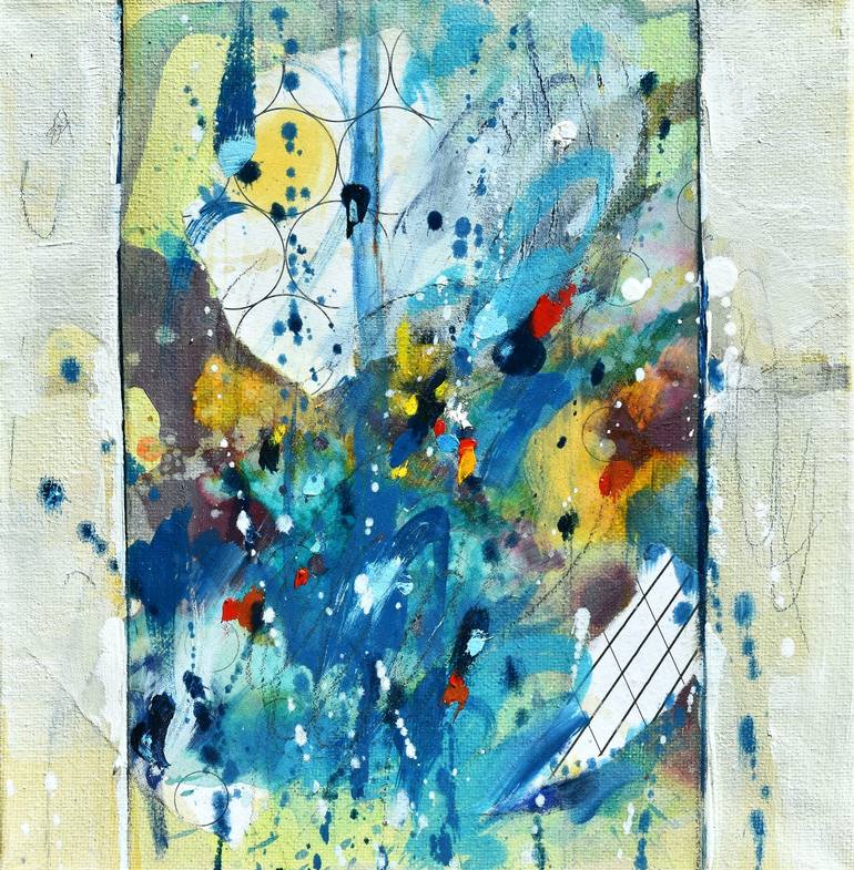 Along The Way was inspired by the enchanting and suddenly bold colors you often see when you explore the early spring landscape. When you find inspiration in nature, it often involves projecting the feelings coursing through you onto the landscape around you. The spattered and running paint symboliz...