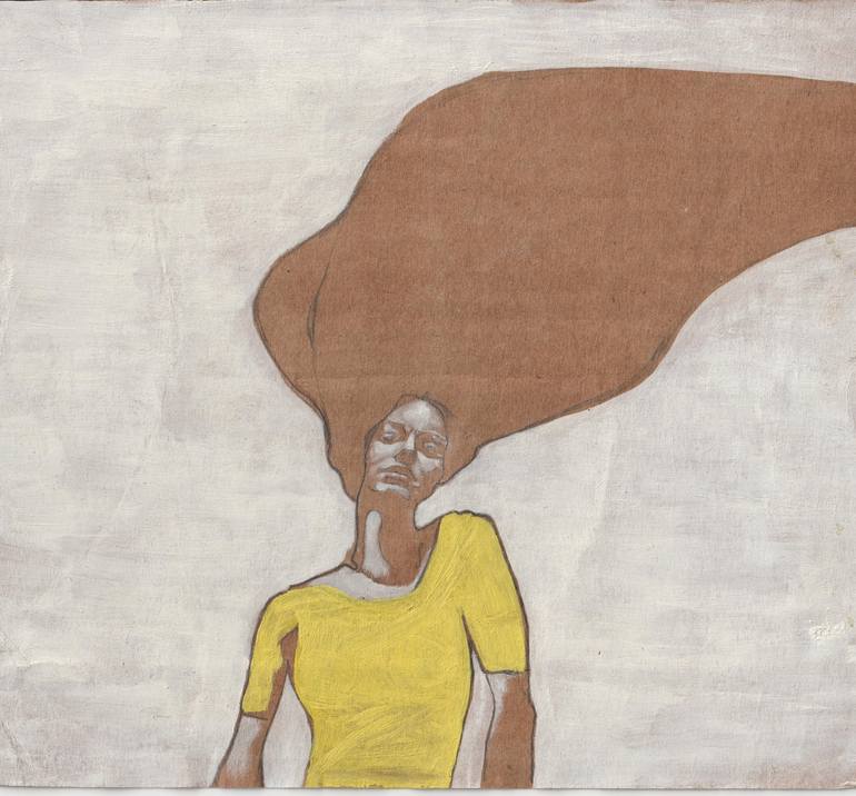 Oil painting on cardboard, woman in yellow. Oil on cardboard
