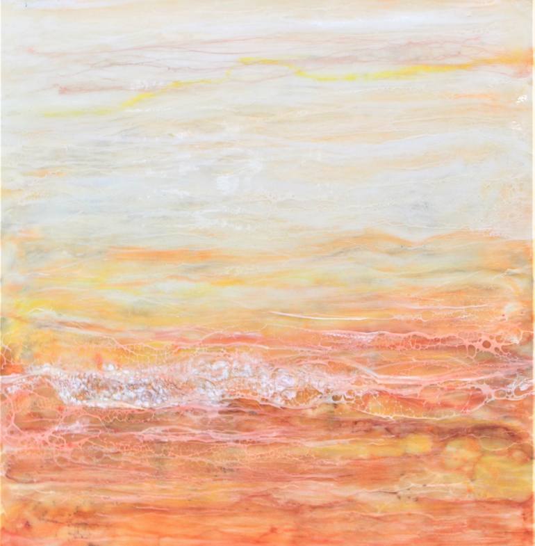 This painting is an encaustic (medium made out of beeswax and dammar resin) painting on the cradled wooden panel. Painting is 8"x8".