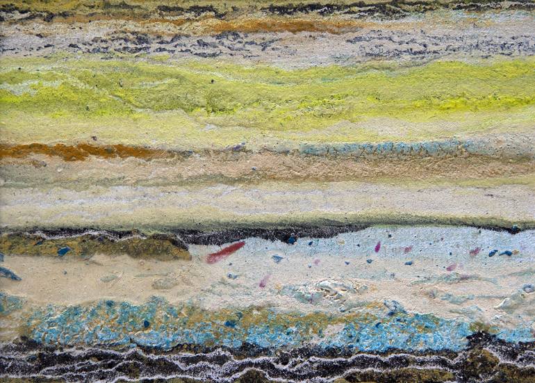 This is a view over hills covered in clouds to the distance. Poster paint (gouache), acrylic and varnish painting that is 14 x 19 x 1cm big. The painting has some texture and cracking that causes the desired effect. It and other similar painting were produced in the spring of 2013. Exact date unknow...