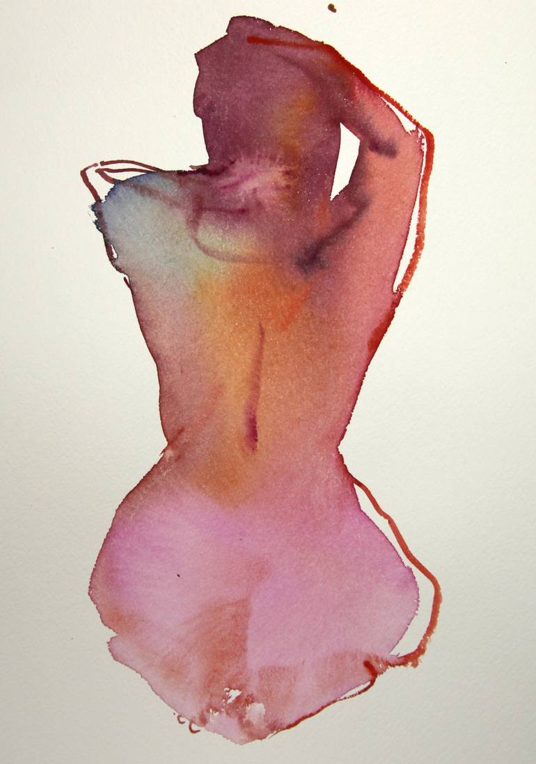 Subtly erotic nude painted on high quality watercolor paper.