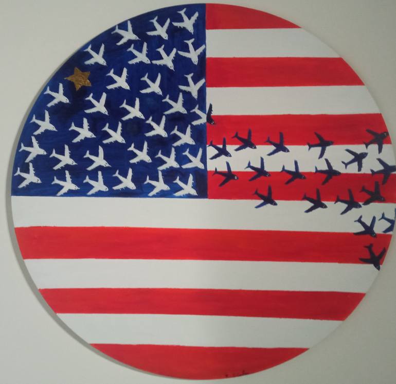 American flag fly so as not to forget a unique hand-painted tribute painted in acrylic on paper measuring 90 x 90 x 3 cm of 2023 will be shipped in a rigid container with certificate of authenticity from Roberto Scala, artist based in Milan, Italy Best