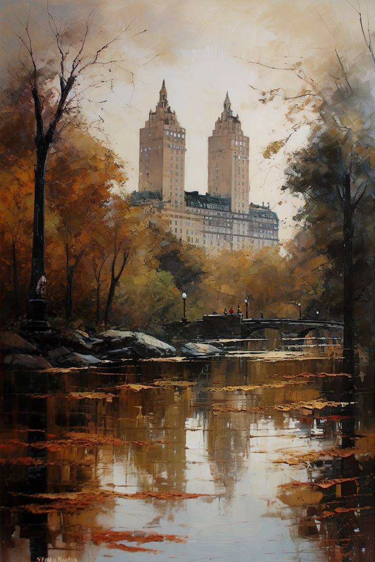 An Oil painting using the watercolor technique wet on wet with heavy brush strokes, representing Central Park. An unique painting for your home, living room, kitchen, bedroom or office…un unforgettable gift for your relatives and friends *Title: An Afternoon in central Park *Painting Size: multipl...