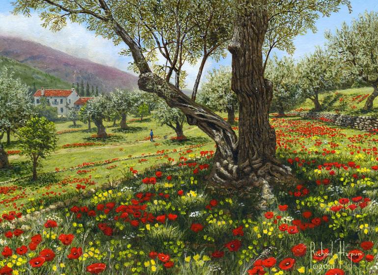 Award-winning artist, Richard Harpum, paints mainly with acrylics on canvas or board but also paints watercolour florals. He works in a realist style and pays meticulous attention to detail. His slogan is "High Definition Art". Richard's primary focus is landscapes and seascapes but he also paints still lifes, portraits and florals. The effective use of light is a key ingredient to all of Richard's works and he spends a great deal of time before starting a painting in selecting a composition that provides both drama and contrast. Born in Bromley, England, in 1951, Richard has had a passion for drawing and painting from a very young age. As a youngster, he was always drawing and became a prolific painter after he received an oil painting set for Christmas when he was 12. He has a Master of Arts degree from Cambridge University. Richard's work was featured in a 10-page article in International Artist Magazine, Issue 73, June 2010. He has also won a number of art competitions and awards. He is a strong advocate for using the golden ratio (Phi - 1:1.618) in his paintings. You may note that the position of the sun or some other key feature or length often uses a golden ratio. In some of his works there are several used. Richard believes that this gives his paintings better balance than using the more traditional "rule of thirds". During his life Richard has lived in many parts of England and currently lives in South Yorkshire. He has also travelled extensively for both pleasure and business and has lived abroad in Africa, the USA, Australia and Germany for a total of 20 years. This has given him a very broad perspective of the world, as well as providing him with wonderful sources of inspiration for his paintings.