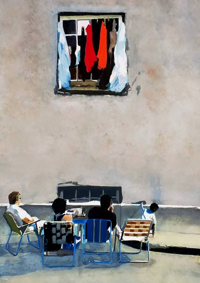 Andere Beobachten Surreal urban scene. Hannover, 2021 Painting oil, acrylic on paper dimensions 42cm x 30cm signed & dated